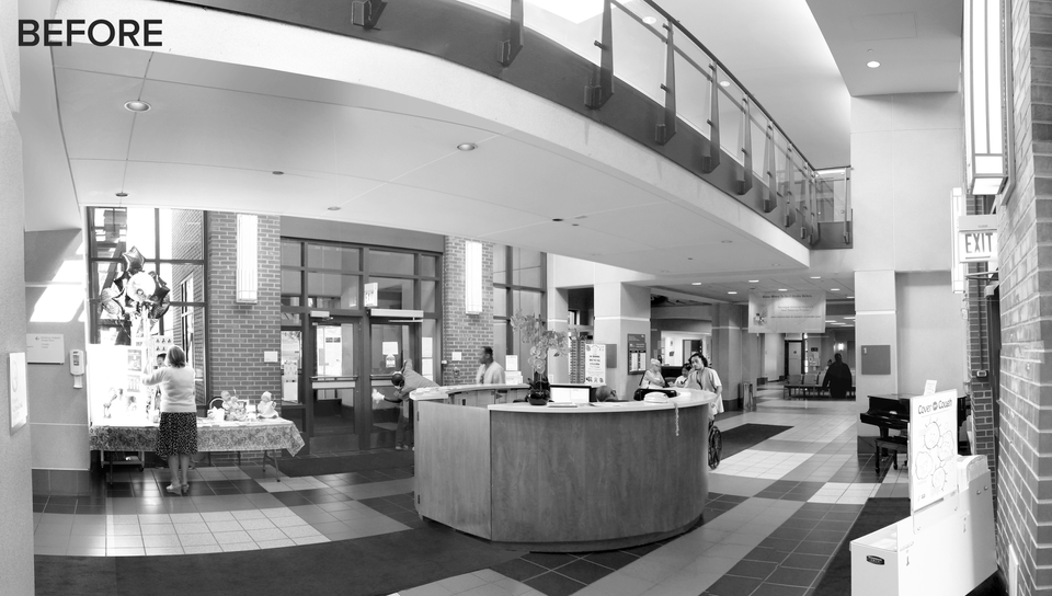 The interior transformation includes new floor, wall, and ceiling finishes to brighten and enliven the interior environment through a bold and expressive introduction of color, as well as provide a clear flow for patient access to the various programs throughout the hospital. Creation of new partitions and demolition of existing barriers in various clinical areas, including the emergency department, seek to reshape programmatic adjacencies and better promote the identity of wellness and privacy. Careful introduction of transparent and translucent materials assists in promoting openness and privacy simultaneously, while providing opportunities to tie the hospital back to the culture of the surrounding community through the introduction of local art and imagery of nearby landmarks. The introduction of a dynamic ceiling treatment throughout the corridors is meant to both define the various program areas throughout the project, as well as to shape the logic of signage and wayfinding that is both welcoming and easy to understand. The project phasing was compartmentalized into smaller portions that allowed the hospital to maintain day-to-day operations during the course of construction without interruption, as the hospital is an active facility that provides critical services to its surrounding community.