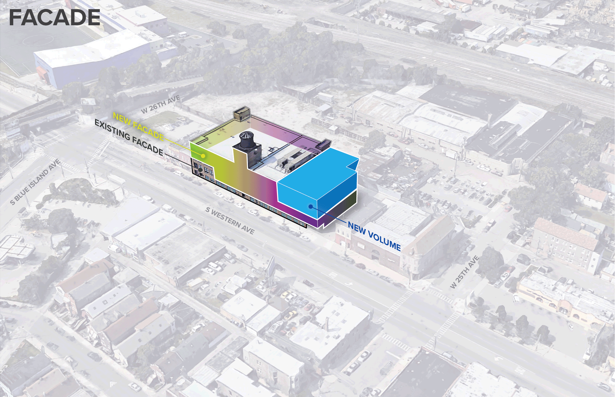To develop the project, the team chose a controversial site: an on the southwest of Chicago. The reasons behind this decision were not only to reuse the vacant deteriorating building structure, but more so to continue the legacy of IDPL: to reactivate its origin neighborhood through the creation of a master plan that would connect its founding building with the new school, creating more than an economical engine but also an anchor for social change.